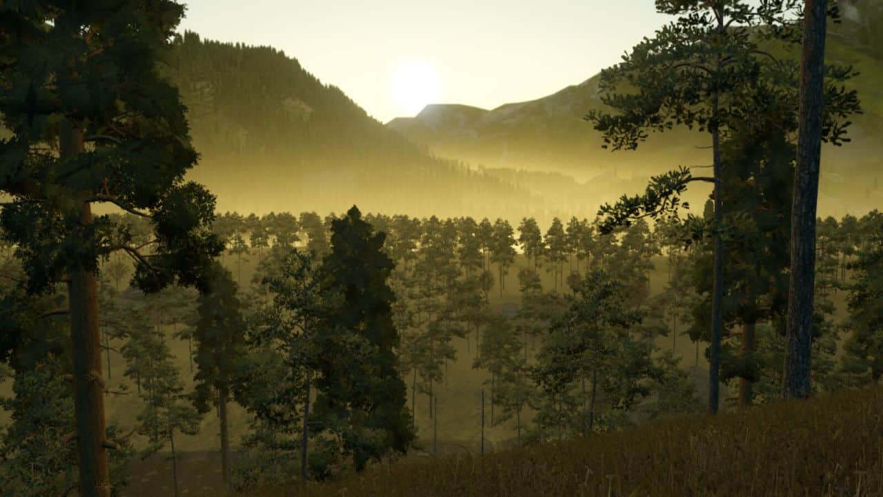 Du kannst auf dieser Farm mehrere Felder haben, aber der Großteil der Karte ist von Wäldern bedeckt, mit sehr wenig Ackerland.