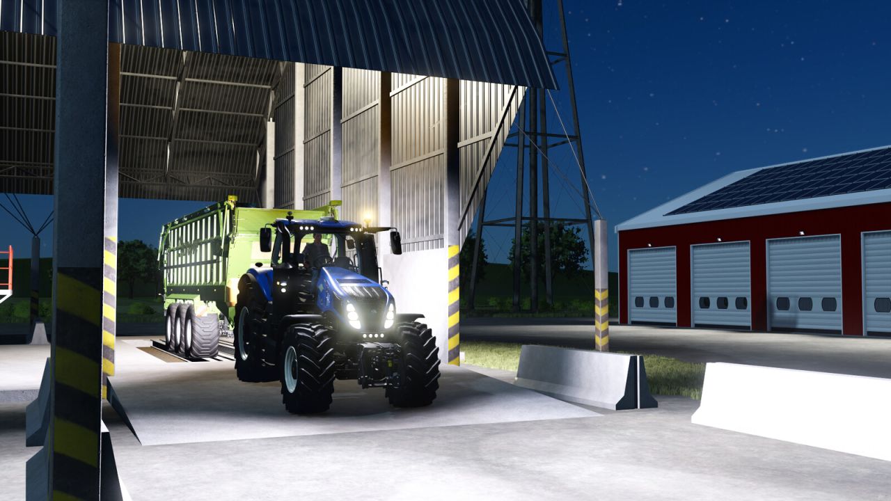 Die beiden Hauptfarmen mit Startfahrzeugen und -ausrüstung verfügen über ein großes Feld mit Garagen und Silos.